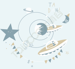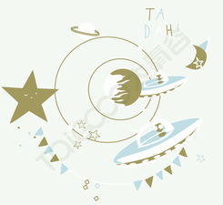 簡約的星星、宇宙等元素輔以恬淡溫馨的色彩,呈現出一個飛向宇宙的童真夢想,這是童年中最美麗的幻想,在睡夢中帶領著孩子飛向宇宙。