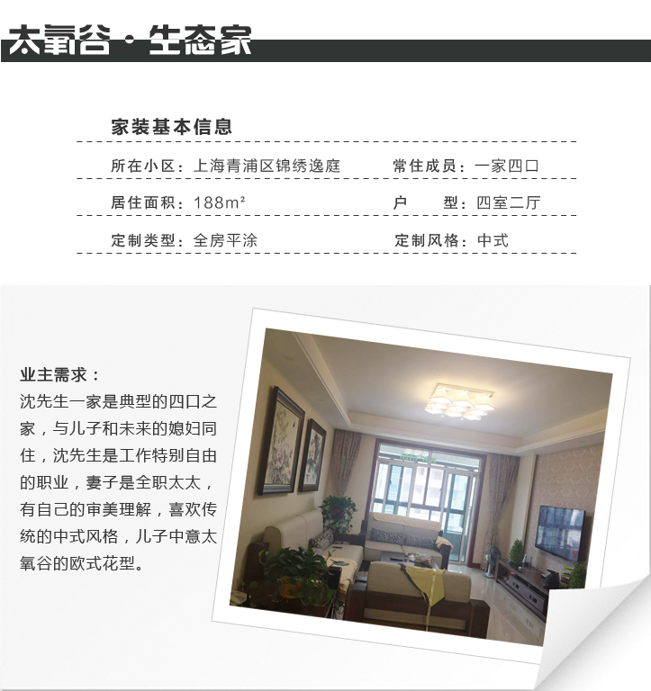 沈先生說:自己兒子馬上要結婚了,希望給兒媳一個好的室內環境,迎接新的小生命,一家人享受天倫之樂。祝福寶寶在太氧谷硅藻泥的保護下,健康快樂的成長!