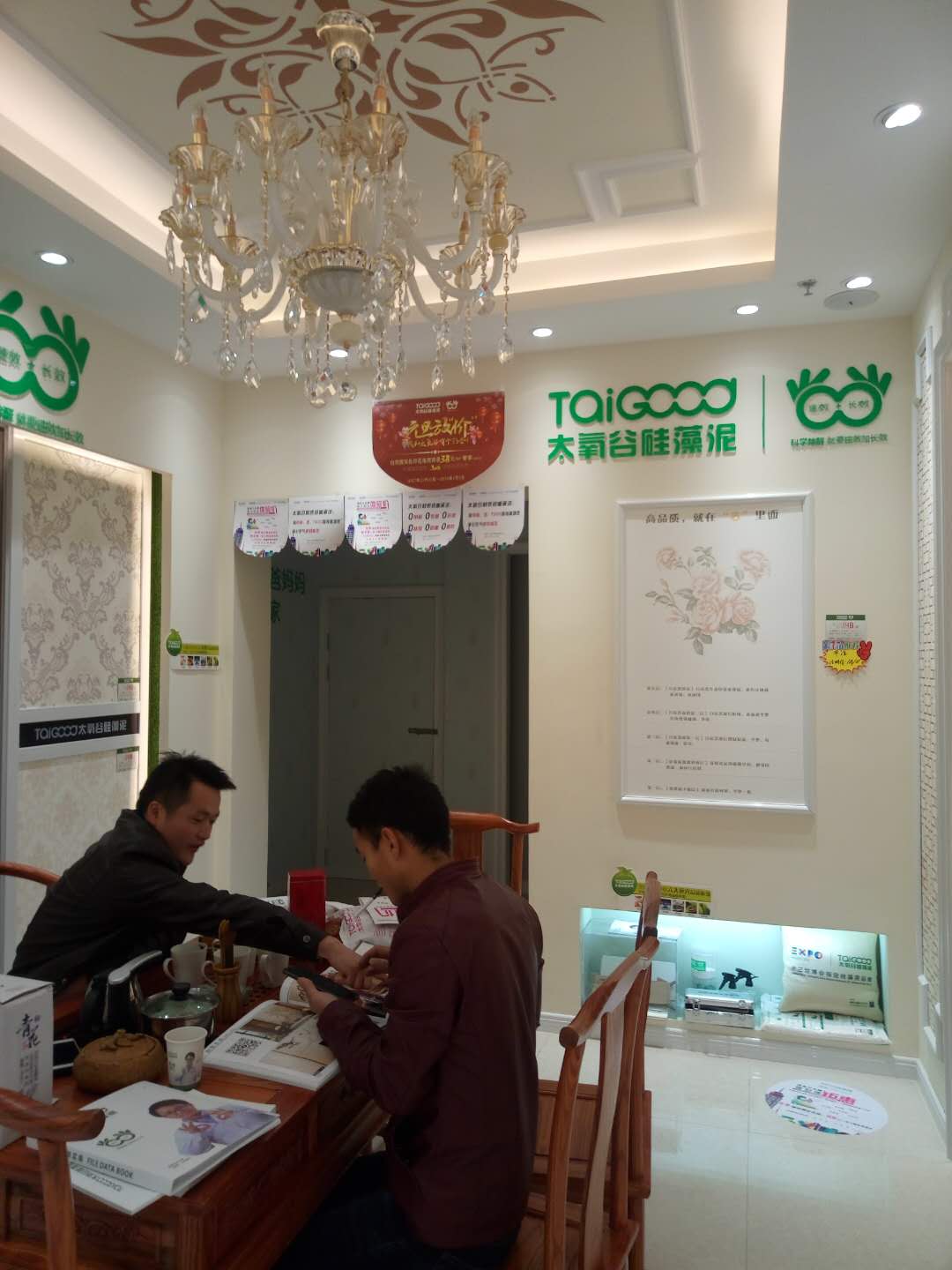 其次,店面的地理位置,決定了客戶質量,這次太氧谷硅藻泥福泉店位于福泉縣麒龍建材商場,是當地主流的幾個建材商城之一,而且此賣場的客戶主要是當地一些高端消費人群,對生活起居的品質有更高的要求,硅藻泥無疑是最符合他們口味的墻面材料首選,也就在無形之中增加了店面的成單率。