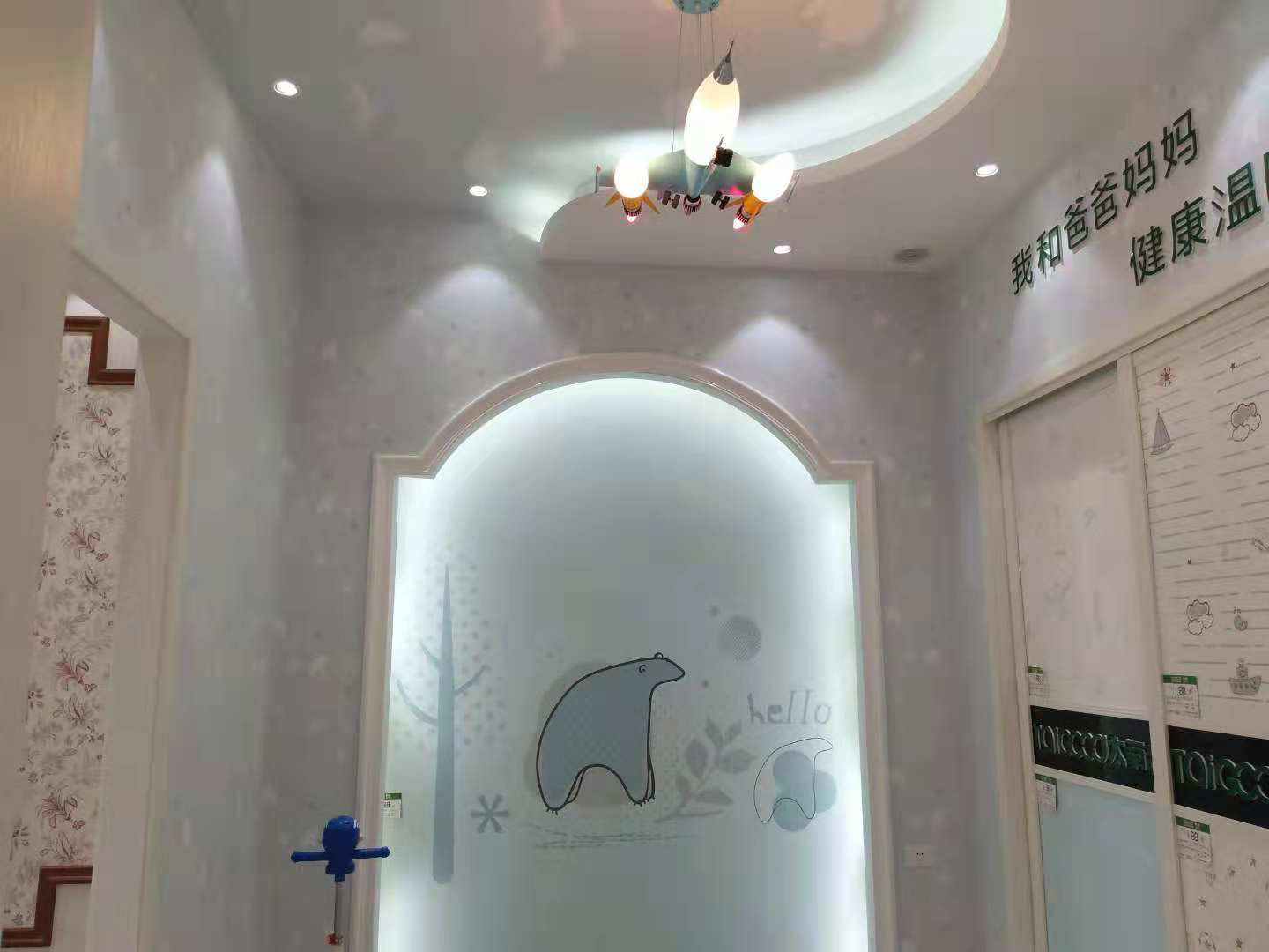 兒童房展示的是太氧谷硅藻泥《北極傳說》,呆呆萌萌的小熊,憨態(tài)可拘的樣子令小朋友忍不住想親近。