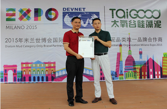 2015年6月5日,在美麗的羊城廣州,廣州太氧谷環保科技有限公司與2015米蘭世博會及國際信息發展組織正式簽署了戰略合作協議,并舉行了盛大的授牌儀式!國際信息發展組織中國代表處商務總干事虞光先生親自頒發證書并正式宣布太氧谷硅藻泥成為2015米蘭世博會及國際信息發展組織唯一指定硅藻泥品牌!