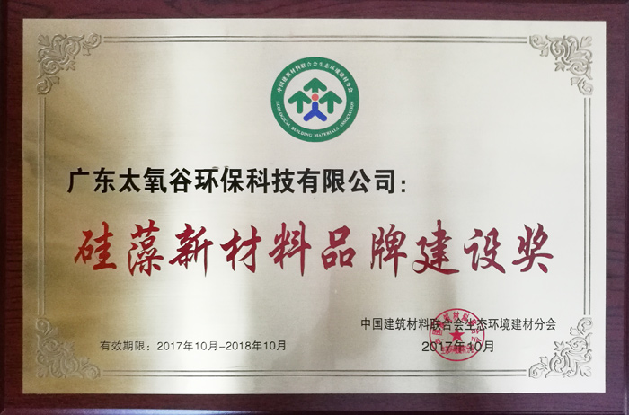 太氧谷硅藻泥榮獲“硅藻新材料品牌建設獎”