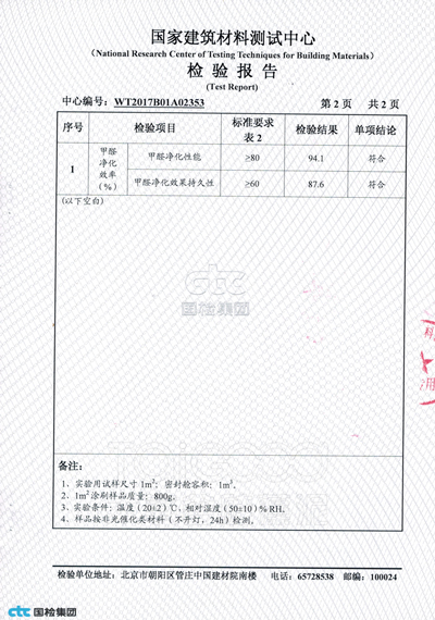 硅藻泥2017凈化甲醛檢測(cè)報(bào)告