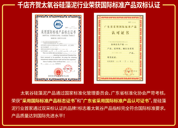 一系列國家國際級權威認證加持,是太氧谷產品質量及環保品質的有力證明,也是企業品牌實力的充分彰顯,更是消費者選購綠色產品的權威依據!太氧谷千店齊賀太氧谷硅藻泥行業榮獲國際標準產品雙標認證,用品質塑品牌靈魂,開啟315活動質量萬里行!
