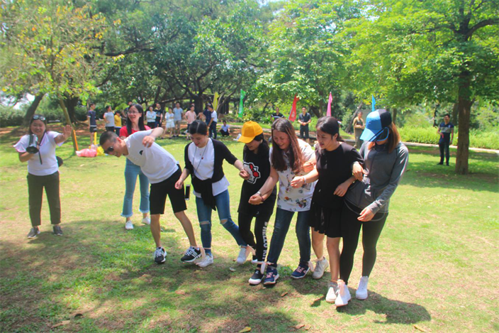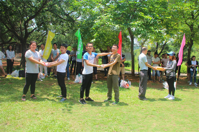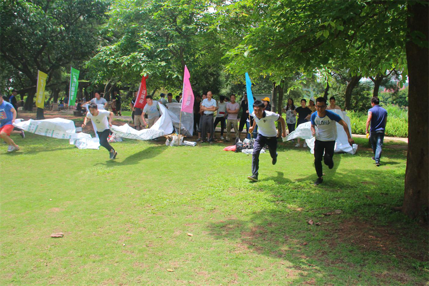 此次團建活動游戲環節所有人員被分成了6個戰隊,每個戰隊都有2個補給包,每個補給包內的食物都是一樣的,每次輸掉的一方都要將物資交接給勝利的一方。本次4個游戲都是以團隊協作為主,無論是考驗搭檔默契的步步驚心“地雷陣”、反應一致“眾志成城”、還是團隊協作分秒必爭的“同舟共濟”、笑果不斷的“二人三足接力賽”,都更注重團隊成員的參與性、親歷性,追求過程的內涵性,讓大家在輕松愉悅的氛圍中,既能享受到競爭對抗的緊張刺激感,又能感受大家互相包容互相幫助的溫暖。