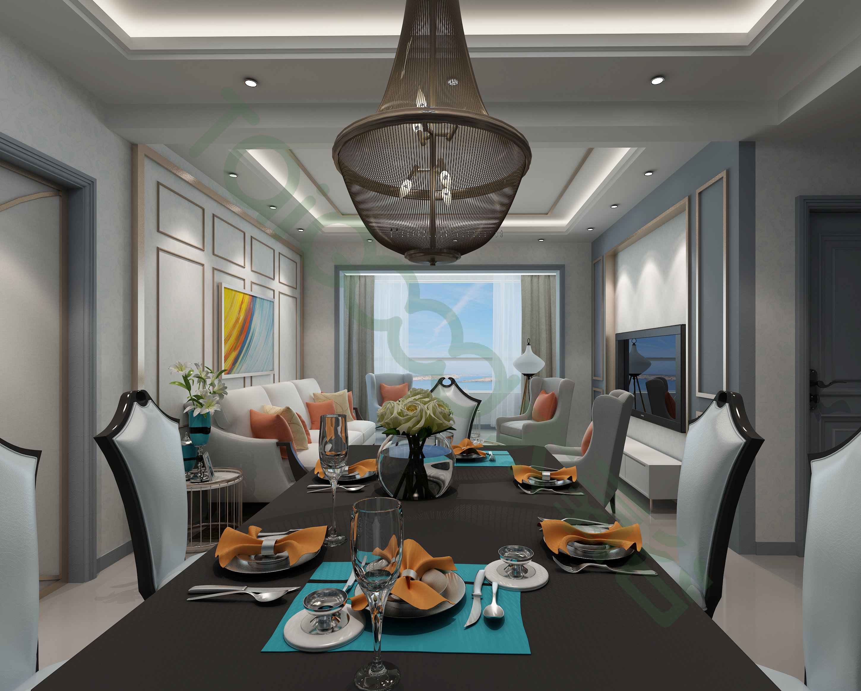落地窗能夠保證空間光線的充足,彰顯大氣,視野開(kāi)闊是這個(gè)空間的一大優(yōu)點(diǎn),行走在這方