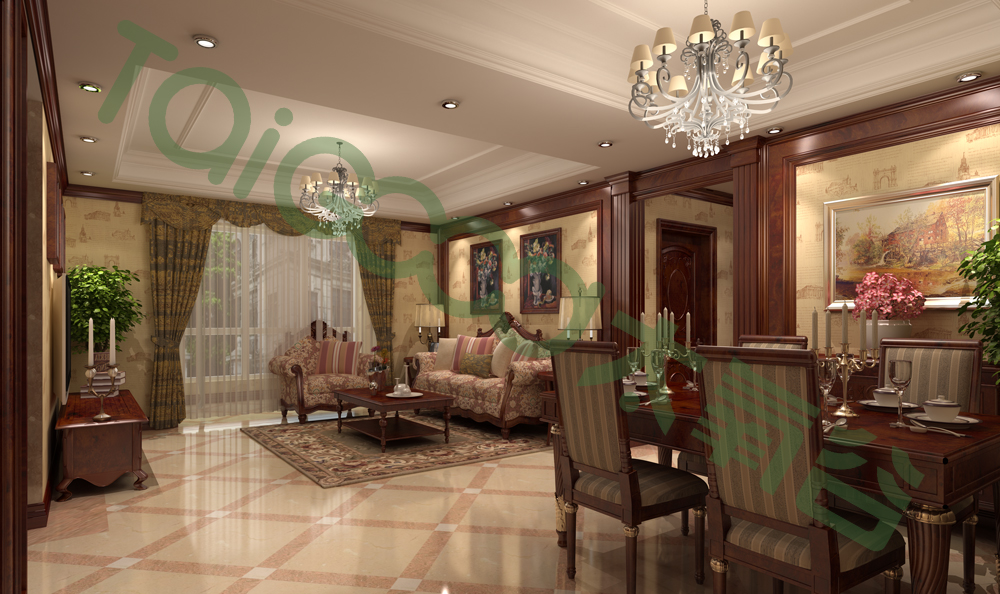 硅藻泥裝飾的空間,仿佛置身于浪漫優(yōu)雅的歐洲世界。紅木的餐桌椅,頂面精致的燈具,打造出舒適自然的光影效果。靠墻處懸掛相同材質(zhì)的掛畫(huà),呈現(xiàn)出一個(gè)很有質(zhì)感的輕奢環(huán)境。