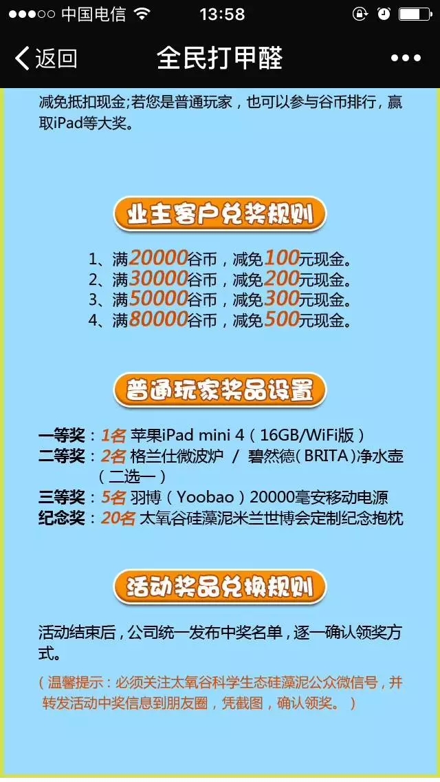 當然,滅醛是全民的事兒,即使您不是業(yè)主,最近也沒打算換房,您也可以同樣參與我們的谷幣累積排行榜!高分榜第一,最高ipad mini4大獎,等傳說中江湖高手來!只要你會玩,只能你能玩,iPad等大獎就可直接領回家!