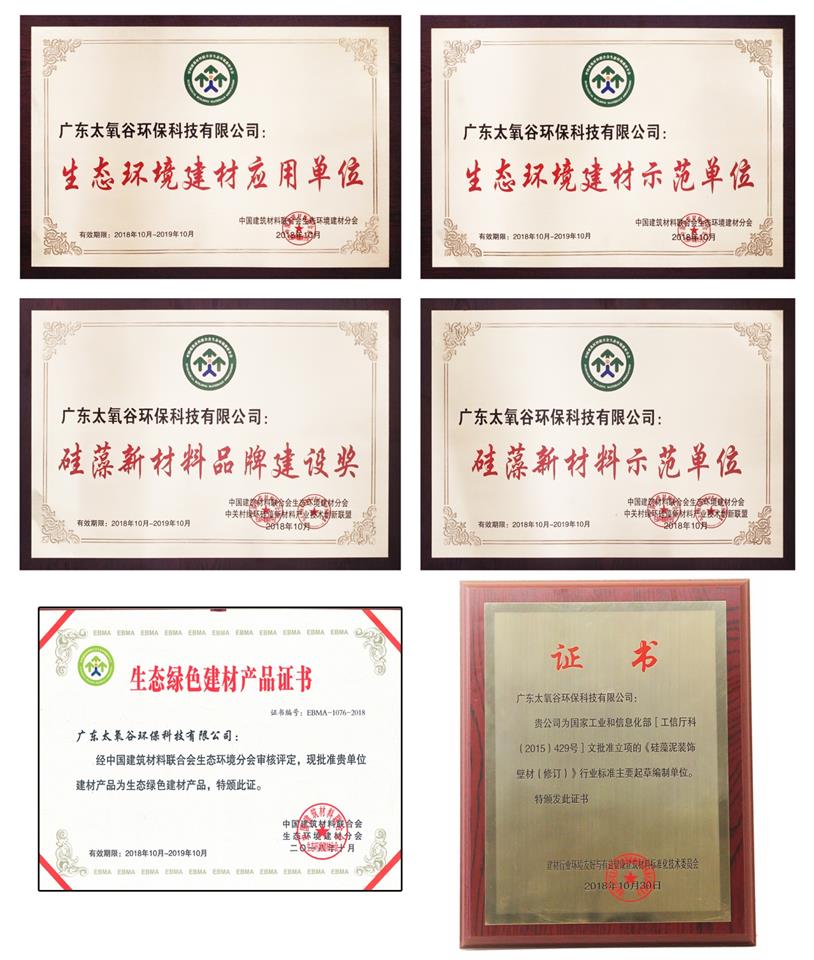 太氧谷硅藻泥以卓越的產品品質獲得國家“質量月”活動五項質量大獎殊榮,是硅藻泥行業中唯一同時獲得五項獎項的企業。