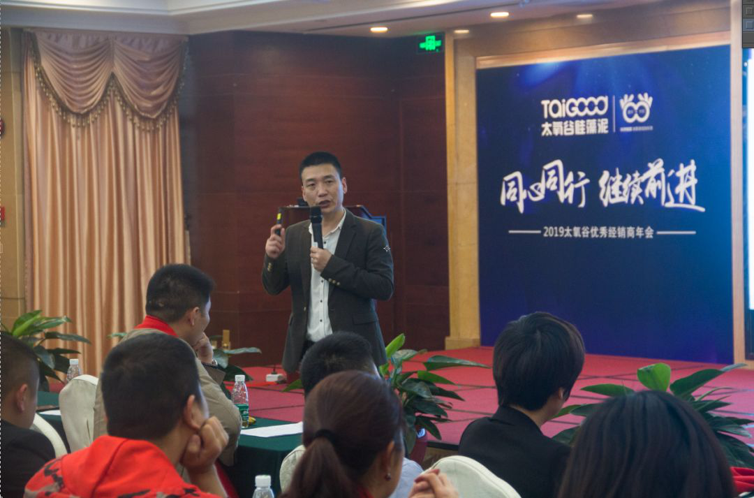 劉總對太氧谷2014年6月公司成立以來的發展狀況做了簡單的回顧,在太氧谷公司及經銷商的齊心努力下,太氧谷取得了4年多來55%的年平均復合增長率的優異成績,在大華南的市場占有率行業領先,并再次強調了太氧谷年會不訂貨、日常不壓貨的經營原則。