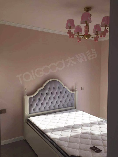 陳先生夫妻倆有一個兩歲的女兒,為寶貝量身定制的裝修設計,甜美粉色的墻面,象牙白床架,粉色的小飛馬吊燈,整個空間溢滿了可愛和溫馨。床頭背景墻的圖案仿佛寓意著對女兒長大后的期望,放飛夢想,為人生展翅飛翔。