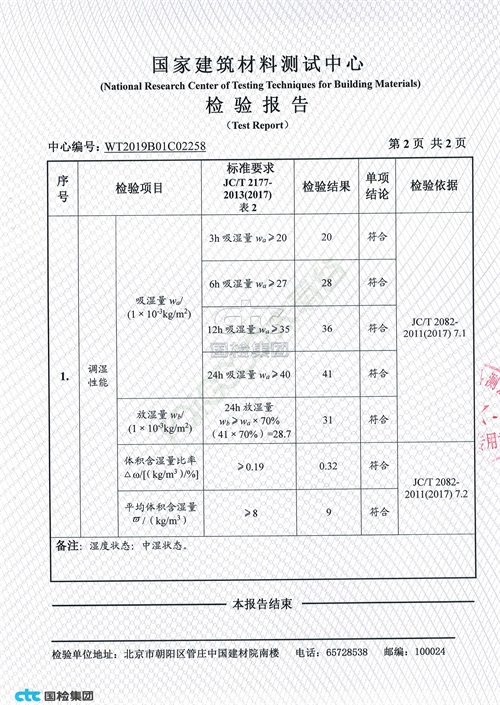 太氧谷硅藻泥的吸濕量、放濕量、體積含濕量比率、平均體積含濕量,均完全符合標準。濕度狀態為:中濕狀態。