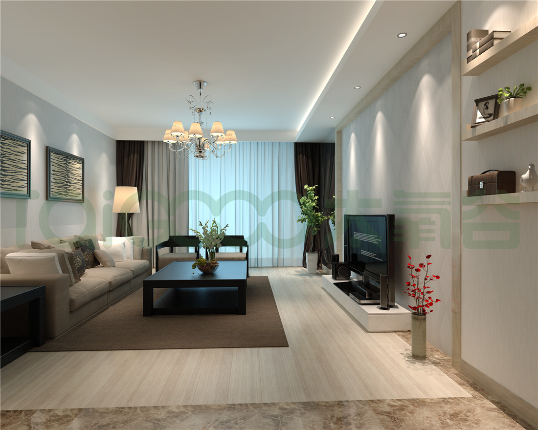 電視背景墻幾何形狀簡潔明朗、菱角分明極具現代時尚感,層疊交錯造就空間的立體層次,制造無