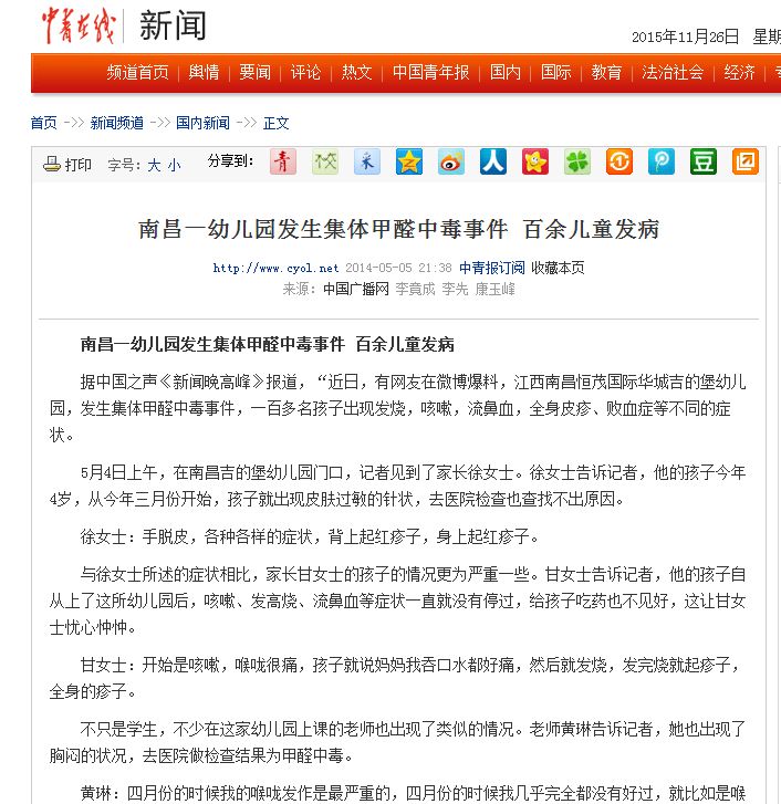 幼兒園甲醛超標新聞報道