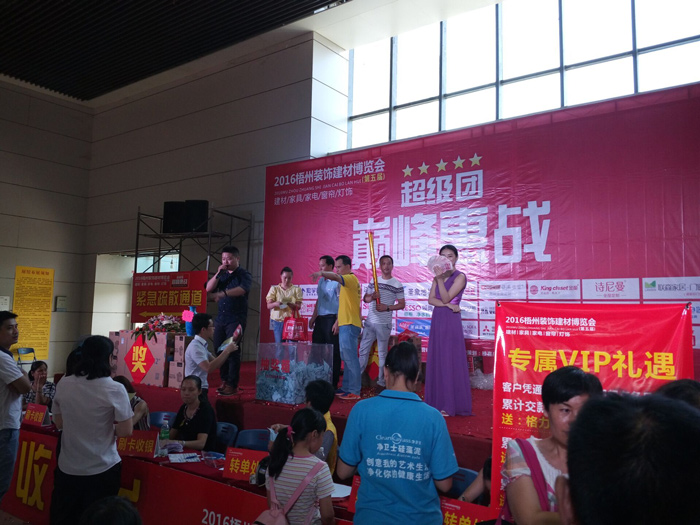 炎炎盛夏,激情六月, 2016年6月25日,一場名為“超級團巔峰惠戰”的裝飾建材博覽會在梧州盛大舉行,該博覽會由梧州裝飾材料協會舉辦,是梧州家居建材市場最具品牌號召力最具實力的盛會,目前已是第五屆。會場群星薈萃,眾多一線大牌濟濟一堂,星光熠熠。
