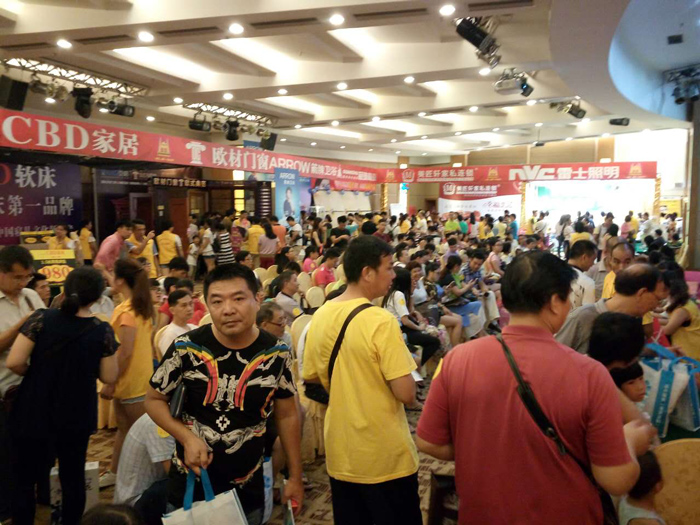 明星效應,加上前期預熱,酒店展廳的現場迎來了前所未有的人群狂潮,不大的場地涌進了六百多戶的業主!活動剛開始,太氧谷硅藻泥的展位就已經被擠得滿滿當當!