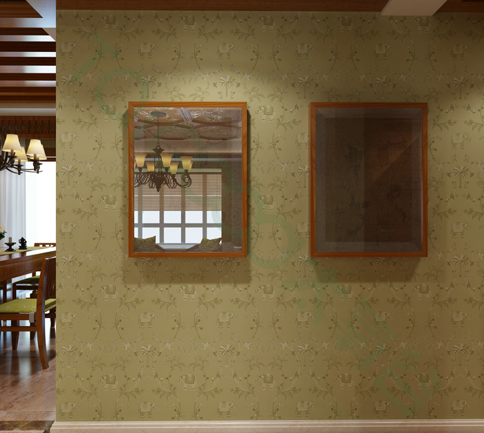 原始自然,色澤鮮潤,斑駁的叢林,寧靜清新又透著自然神秘的氣息,與憨態可掬、誠實忠厚寓意“吉祥”的大象一起,營造飽滿又沉穩的東南亞原始風情。