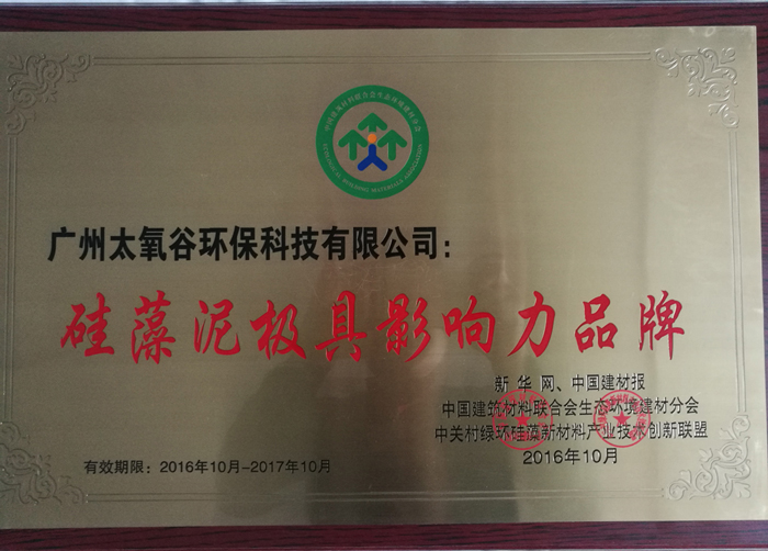 太氧谷硅藻泥榮獲“硅藻泥極具影響力品牌”