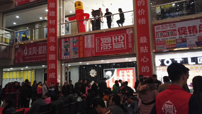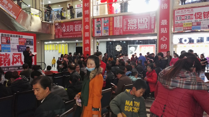被擠得滿滿當當的東門福家建材負一樓大廳