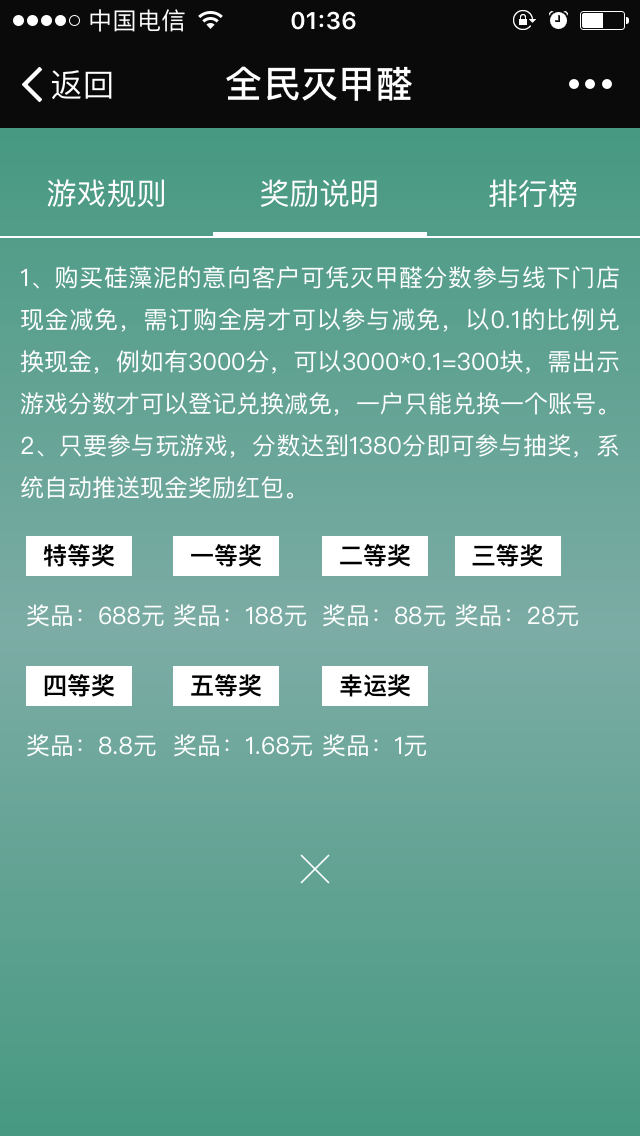 除此之外,如果是業主客戶想訂購硅藻泥,全房下單也是可以通過游戲分數減現的!排行榜取的都是大家的游戲最高分,但是積分是不予累加的。兌換規則如上,查看游戲分數如下: